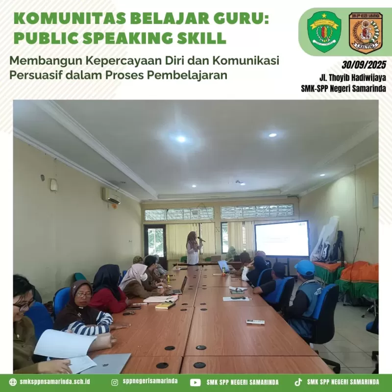Selasa (30/09) SMK-SPP Negeri Samarinda melakukan giat Komunitas Belajar Guru dengan tema pembelajaran Meningkatkan Public Speaking Skill untuk Membangun Kepercayaan Diri dan Komunikasi Persuasif dalam Proses Pembelajaran.