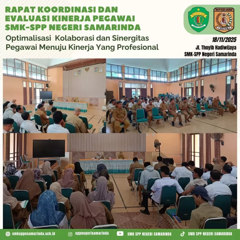 Samarinda (18/11/2025) – SMK-SPP Negeri Samarinda melaksanakan rapat koordinasi dan evaluasi kinerja yang diikuti seluruh guru dan tenaga kependidikan.