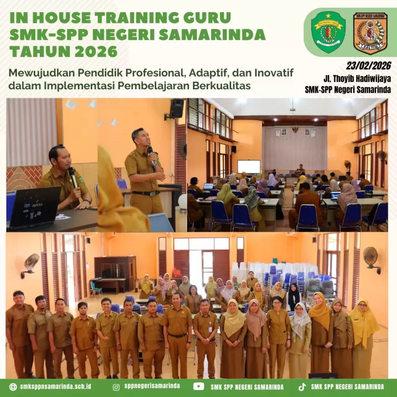 Samarinda - Tahun 2026 menjadi momentum bagi SMK SPP Negeri Samarinda untuk terus bertransformasi. Melalui In-House Training (IHT) kali ini, SMK-SPP Negeri Samarinda berkomitmen mewujudkan tenaga pendidik yang Profesional, Adaptif, dan Inovatif.