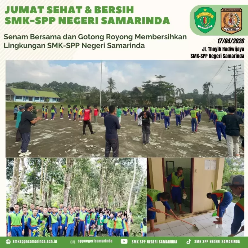 Jumat (17/04/2026) Hari ini warga SMK-SPP Negeri Samarinda mengawali pagi dengan energi positif Mulai dari senam bersama yang bikin bugar, dilanjutkan dengan gotong royong membersihkan lingkungan sekolah tercinta.