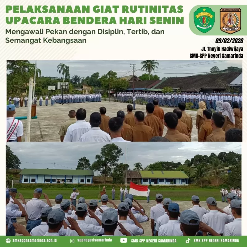 Senin (09/02/2026) Mengawali pekan dengan penuh integritas melalui pelaksanaan upacara bendera. Kedisiplinan yang dibentuk di lapangan merupakan fondasi utama dalam menjalankan tugas dan tanggung jawab demi kemajuan bangsa. Mari kita manifestasikan semangat kebangsaan dalam setiap karya dan pengabdian.