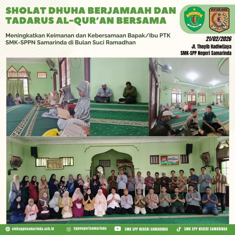 Samarinda - Indahnya kebersamaan Bapak/Ibu PTK SMK SPP Negeri Samarinda dalam balutan ibadah pagi ini. Dimulai dengan sujud Dhuha dan dilanjutkan dengan lantunan ayat suci Al-Qur'an secara bersama-sama.