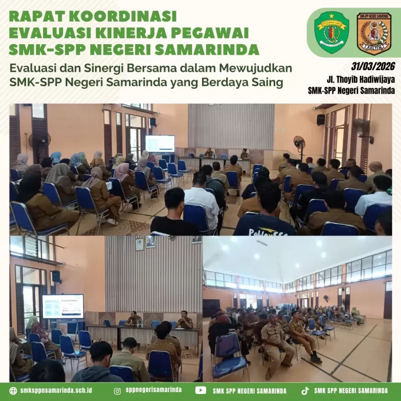 Selasa (31/03/2026) Seluruh PTK SMK-SPP Negeri Samarinda berkumpul dalam Rapat Koordinasi Evaluasi Kinerja. Rapat ini dipimpin langsung oleh Plt. kepala Sekolah Bapak Iwan Kurniawan, M. Pd.