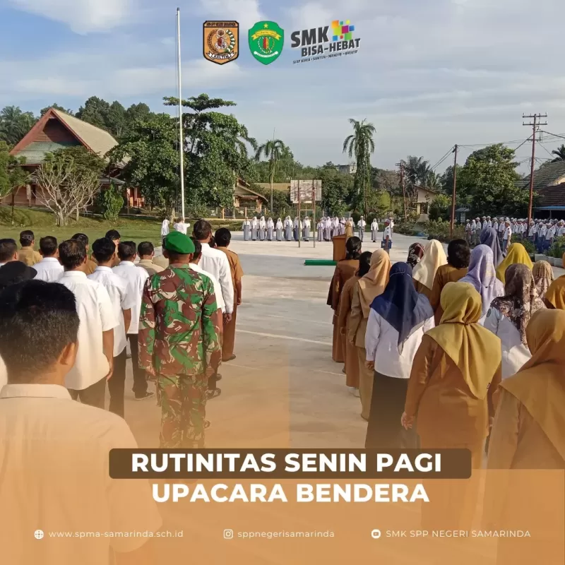 Kegiatan upacara pagi di SMK-SPP Negeri Samarinda (29/01) merupakan kegiatan rutin yang dilaksanakan setiap hari senin. Bertempat di lapangan sekolah SMK-SPP Negeri Samarinda dan dihadiri oleh seluruh peganwai dan siswa. Ini merupakan sarana disiplin dan mengenai waktu dan upaya penumbuhan budi pekerti dan karakter bangsa, terutama nilai-nilai kebangsaan dan kebhinekaan.