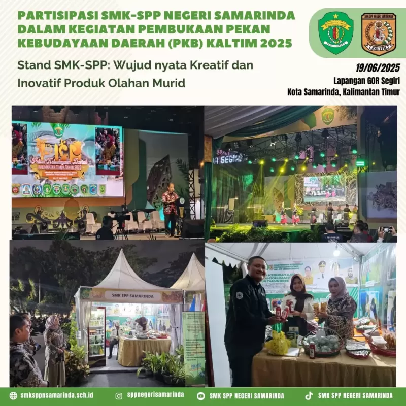 Kamis, 19 Juni 2025, partisipasi SMK-SPP Negeri Samarinda pada kegiatan ini dengan menampilkan kreativitas dan inovasi melalui produk olahan murid di Stand SMK-SPP Negeri Samarinda menjadi wujud nyata dari komitmen sekolah dalam mengembangkan bakat dan keterampilan murid. Mari kita dukung dan apresiasi karya-karya kreatif dari SMK-SPP Negeri Samarinda. Serta jangan lupa mengunjungi stand kami di Gor Segiri. Kami tunggu kedatangan anda✨