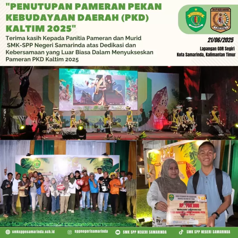 Samarinda (21/06) Penutupan Pameran Pekan Kebudayaan Daerah (PKD) Kaltim 2025 telah berlangsung dengan sukses. Dalam giat ini dihadiri oleh Ibu Elis Susiana, S. Pd., M. Pd. Selaku Kepala Sekolah.Â