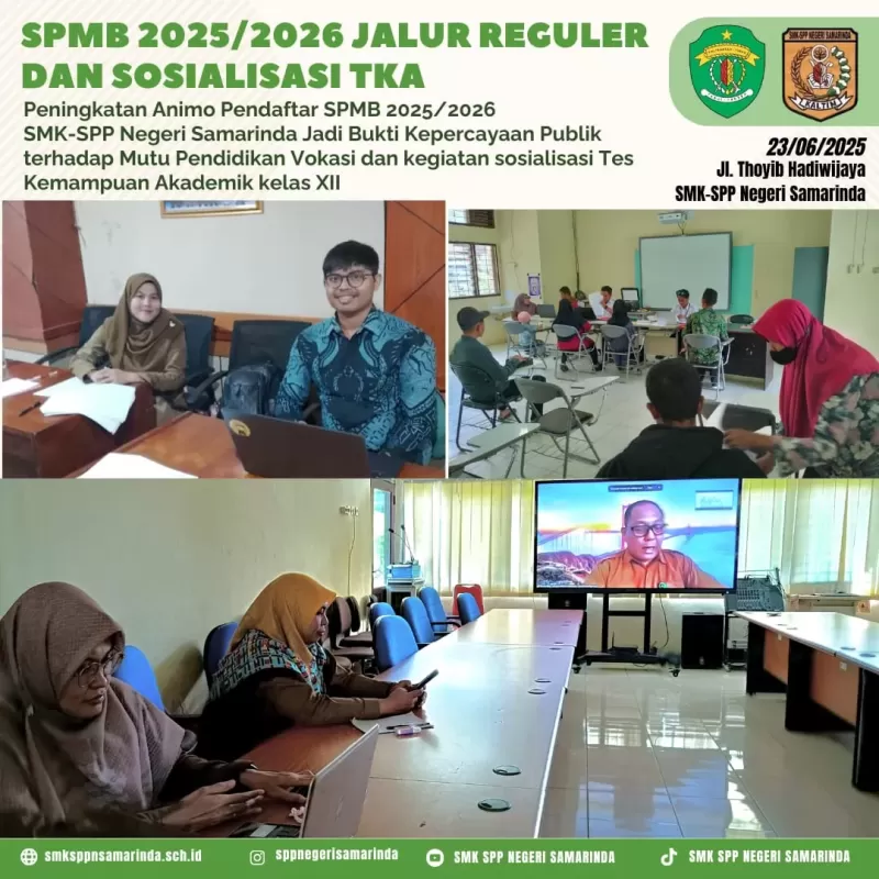 Selain itu disampaikan juga informasi tentang sistem SPMB jalur reguler Tahun Ajaran 2025/2026. Sebagai bentuk transparansi dan kesiapan Sekolah dalam menyambut generasi baru SMK-SPP Negeri Samarinda.