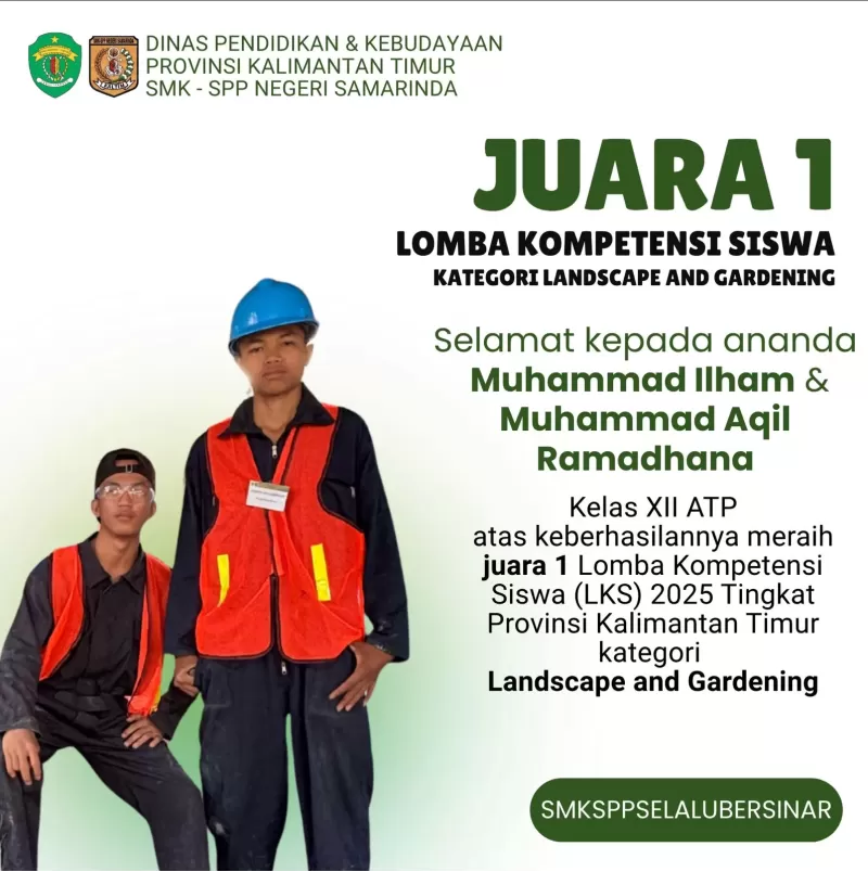 kepala sekolah ibu Elis Susiana, S.Pd.,M.Pd mengucapkan selamat atas keberhasilan murid SMK SPP yang mewakili Kaltim untuk maju ke tingkat nasional lomba kompetensi siswa ( LKS) pada mata lomba Landscape dan Gardening tentunya dengan kolaborasi dan sinergitas tim yang solid yaitu guru mapel